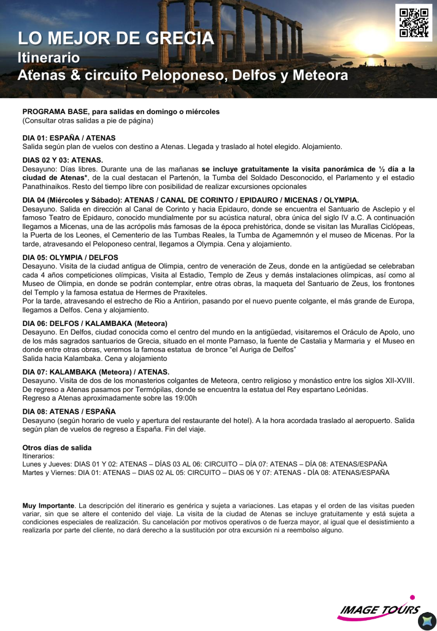GRECIA verano 2026. Circuito Atenas, Peloponeso, Delfos y Meteora, 8 días desde 1.589€